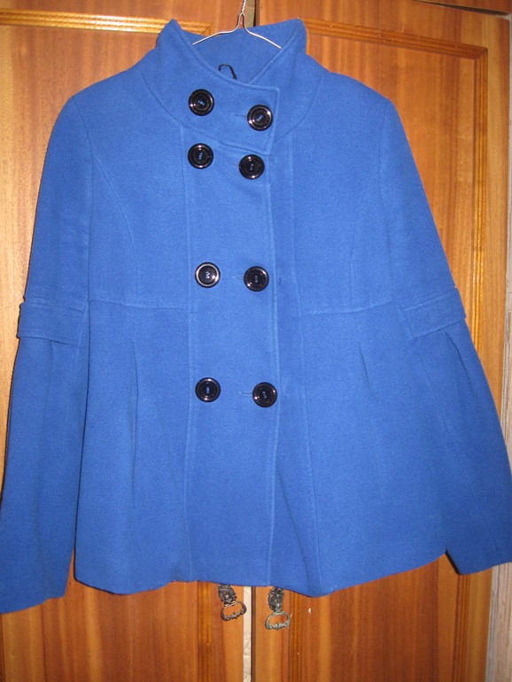 3. Пальто яркого синего цвета с рукавами клёш в хорошем состоянии без дыр, пятен, все родные пуговицы на месте ПОСЛЕ ХИМЧИСТКИ-750 РУБ. (покупала больше 2000 руб)