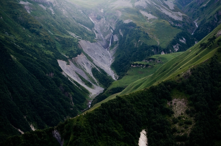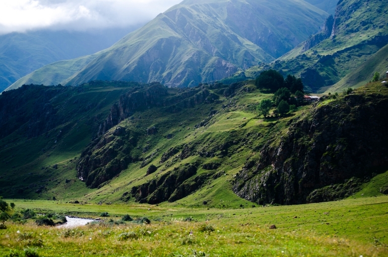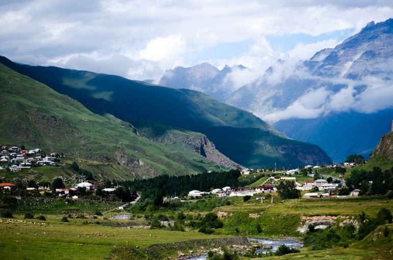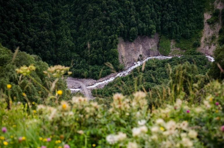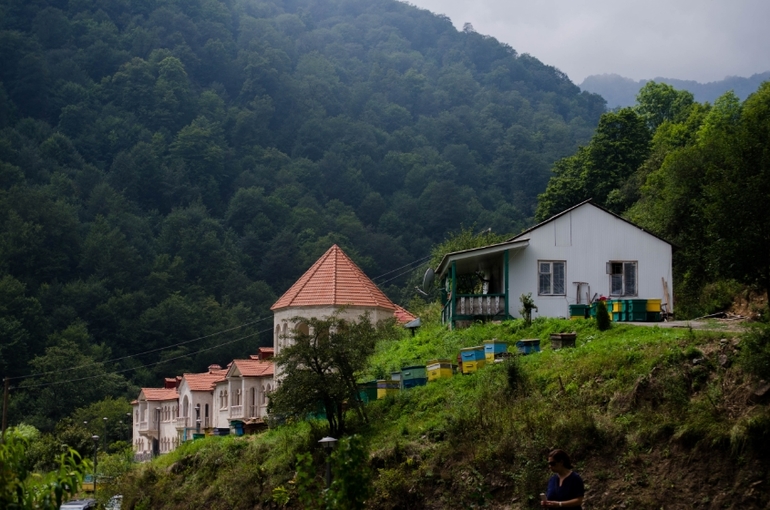 Очень много иностранной речи вокруг было. Не знаю, так всегда было? Или сейчас бум на Грузию? Очень много там строят красивых маленьких гостевых домиков. Они все, как из голливудских фильмов. И с бассейнами и с красивыми фасадами, и всё это у подножия гор... мечта!