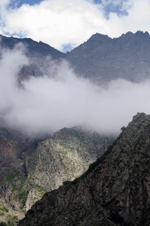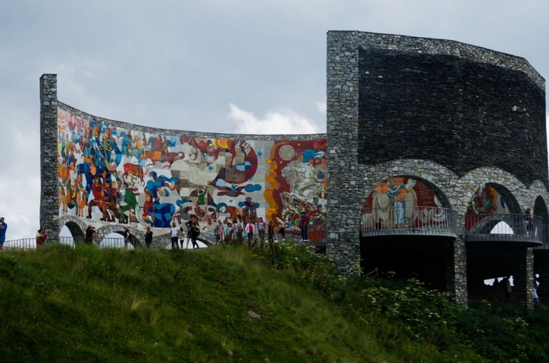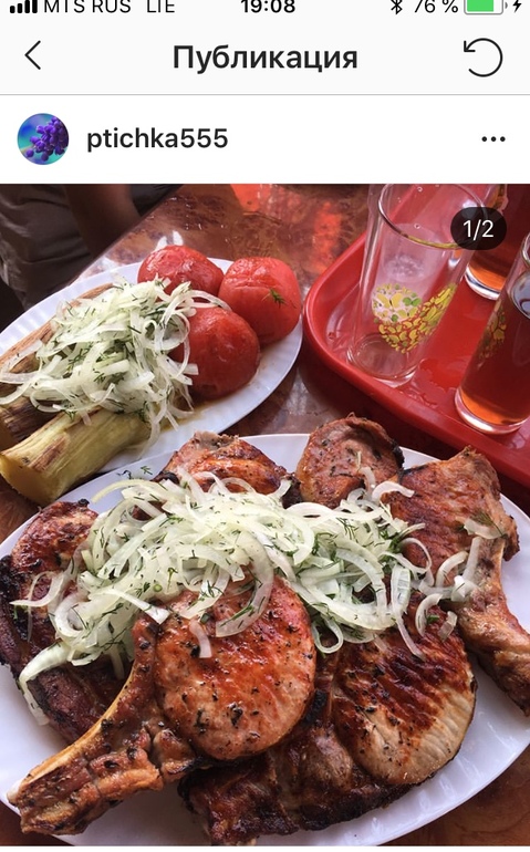 Дальше начался серпантин. Я просто балдела от видов. Никакого страха не было. Знаю, что многие боятся этой дороги, но я на неё даже не смотрела. Только на горы. Уши закладывало, голова не болела, хотя я ждала)). Но обошлось). На самом верху мы вышли перекусить. Хотели настоящих хинкали, но... их не было((. Взяли шашлык и острый суп).
