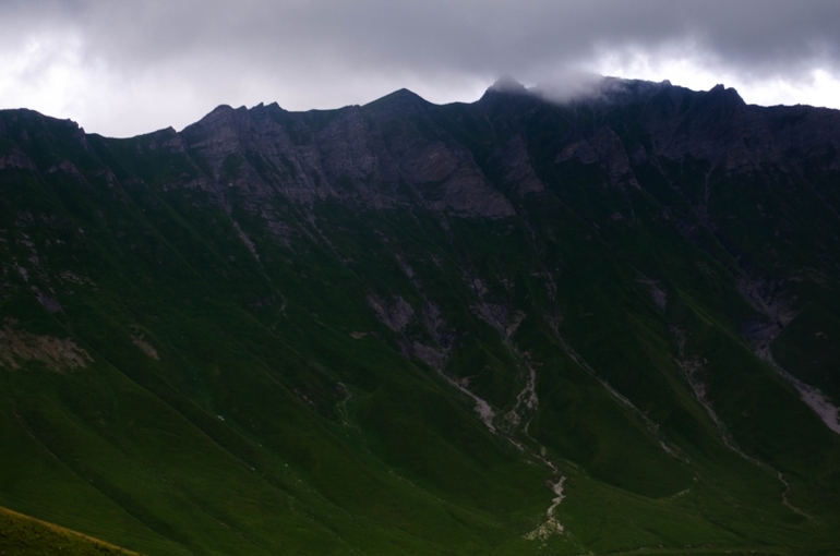 Конечно мы тут же вышли из машины. И стали снимать. Это неописуемая красота. Таких гор наверное больше нигде нет. На этом самом месте к нам обратились на ломаном английском французы). Три парня приехали посмотреть Грузию). Немного удалось поговорить), они нас сфотографировали, а мы их).