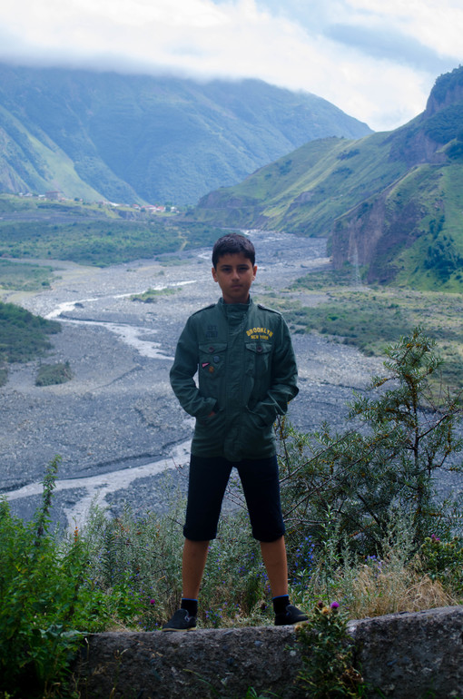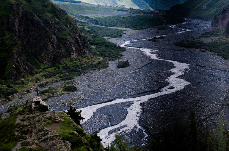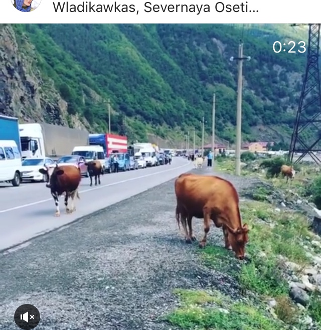 Нам повезло, что въехали мы ночью в эту пробку. Мы в итоге спали. Очень редко, муж продвигался вперед.В час по чайной ложке. Стояли мы 10 часов. Утром, когда рассвело я забыла о пробке. Потому что вокруг было неимоверно красиво. Я горы видела последний раз в 25 лет. Очень люблю природу Кавказа. До мурашек. Но так много гор я не видела никогда). И такой красоты тоже. Ну либо я повзрослела и воспринимаю всё иначе теперь. Мы вышли из машины с детьми и стали прогуливаться вдоль Терека. Вспомнился стих Лермонтова. Причём вспомнил его Костя и прочитал почти весь). Хоть, что- то помнит из школы)). Мимо прошло стадо коров), неспешно ).