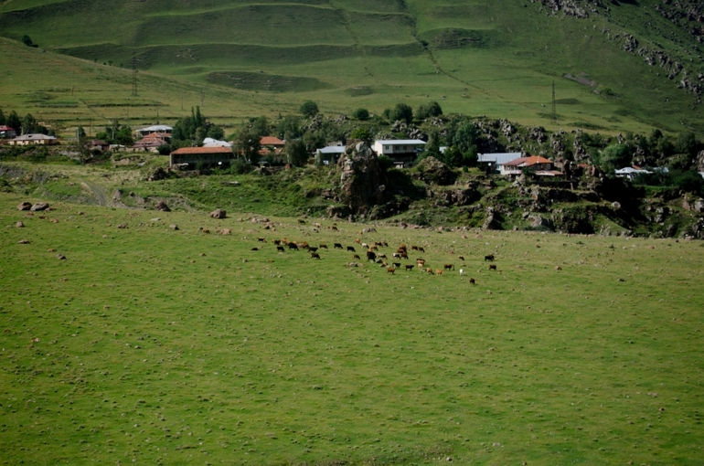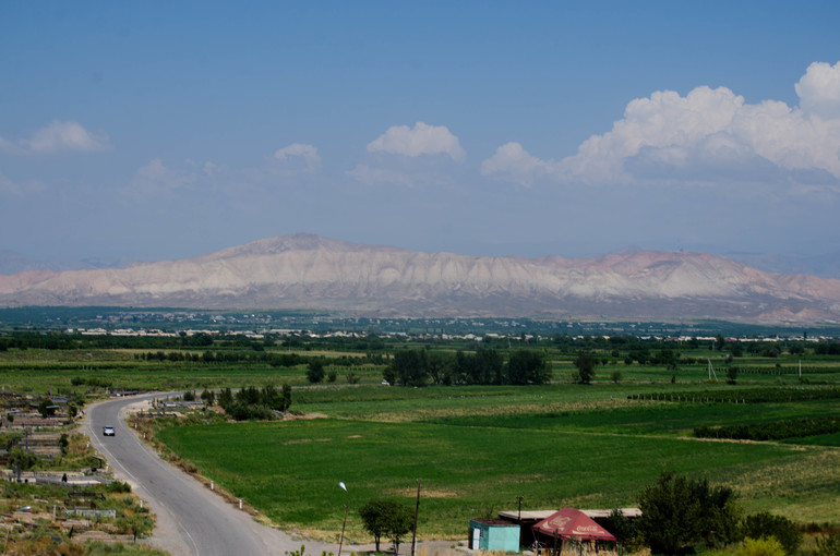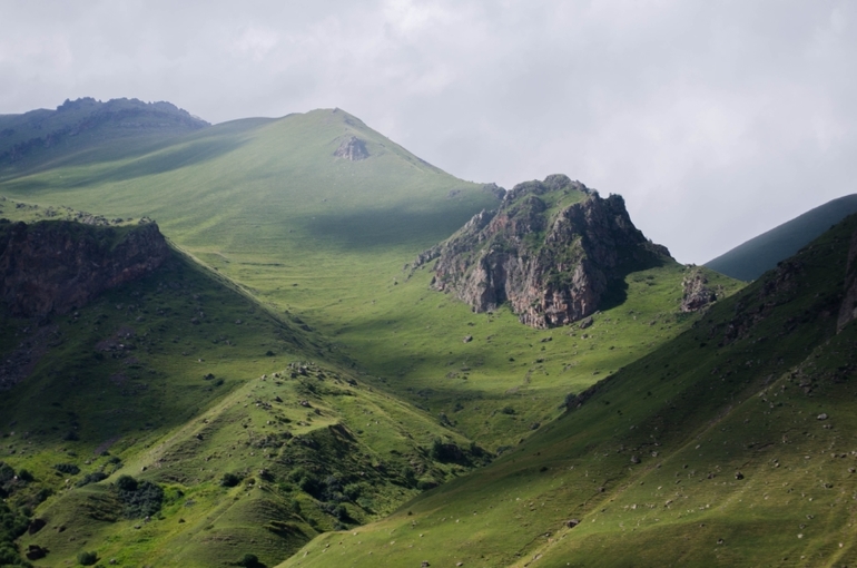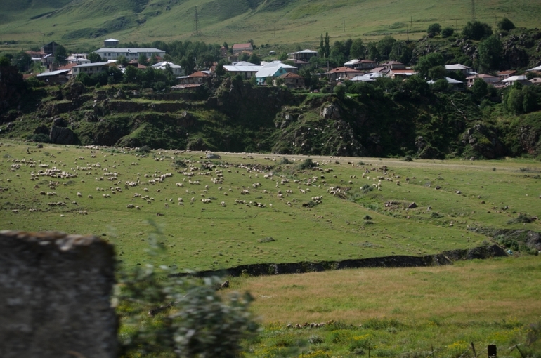 Очень много мы где выходили, поэтому в Тбилиси вкатились уже, когда стемнело(. Я хотела пройтись по городу, но не получилось. И мы поехали дальше. Уже устали, поэтому при въезде в Армению мы сняли номер. Купили еду, поели и легли спать). С утра полные сил, прыгнули в машину и поехали уже в армянские горы). Нас, как раз уже догнали родители мужа ( они ехали из Москвы и отставали от нас часов на 8). И встретившись с ними, мы сели им на хвост и погнали. Тут уже были другие горы. Никакой зелени. Очень мало.