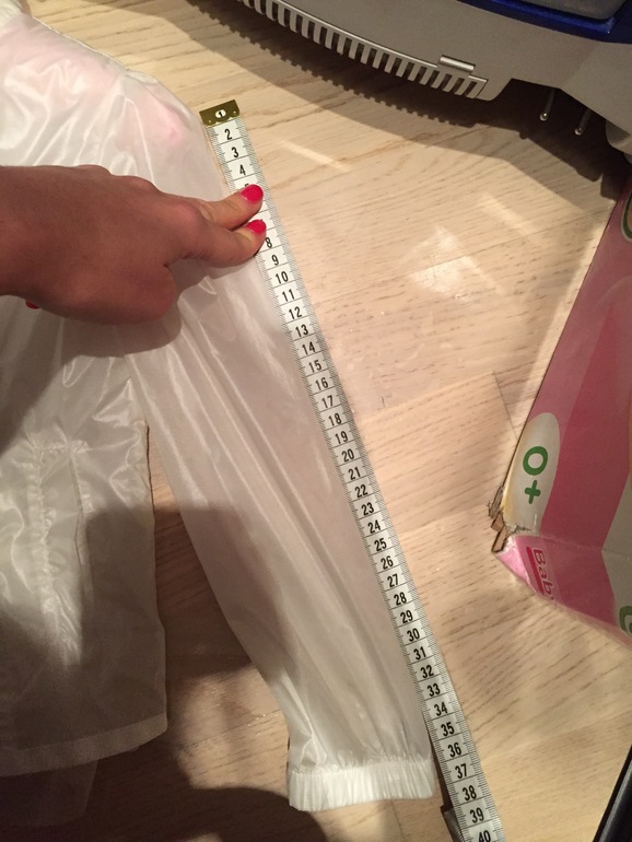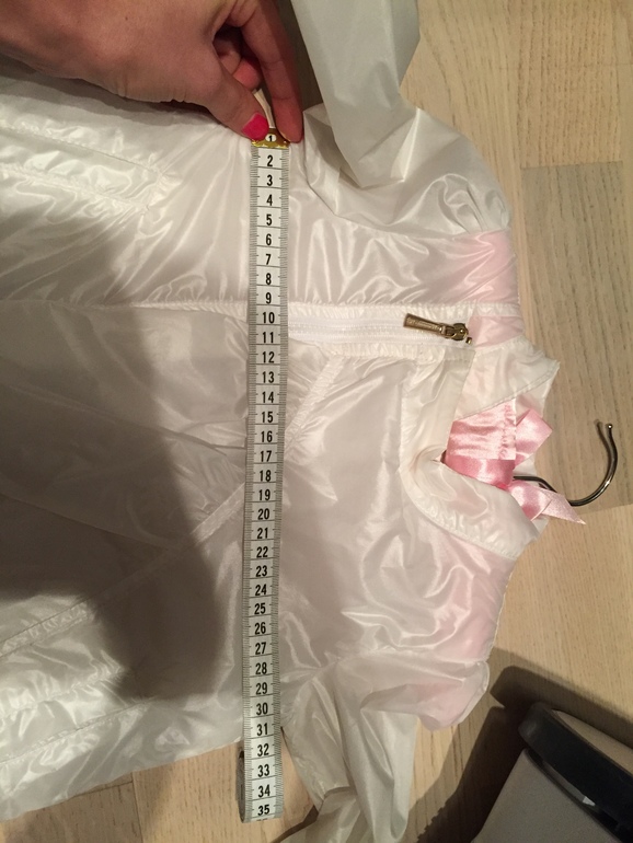 Здравствуйте! Длина рукава от плеча до низа 37 см; длина рукава по нижнему шву (от подмышки до низа рукава) 26 см; длина всей ветровки от плеча до низа 36 см; Ширина между подмышек 31 см.