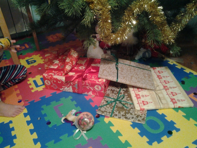 Я переживала,что Бажен будет требовать все пакеты сразу.Конечно,он и потребовал,но я объяснила,что помошники Деде Мороза кладут подарки только ночью,показала пустой пакет и он понял с первого раза)))))