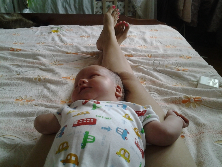 Теперь его нельзя на спину уложить,сразу же переворачивается))))))