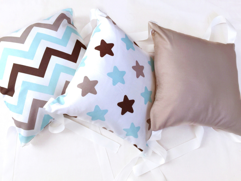 Бортики в кроватку в серо-голубых тонах