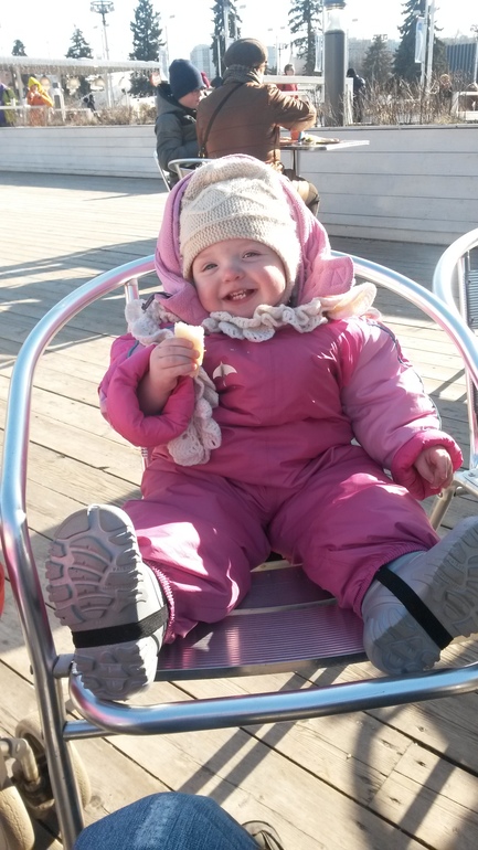 ДекретСегодня решили сходить на прогулку на ВВЦ, благо погода позволяла. Солнышко светило целый день. Вышли из дома около 12 дня, как раз пока доехали доча поспала, ан не тут то было. В трамвае очень громко объявляли остановки и народу как в час пик😡. Настюша конечно от такого шума проснулась, да и интересно стало что там за окном происходит. Доехав до места прошлась немного, потом в калясе покатались. Чередовала она хотьбу и катание на коляске😊. Проголодавшись решили поесть тех самых пончиков, собственно ну не могу я быть на ВВЦ и не поесть их, к тому же это вкус детства. Дойдя до 19 павильона обнаружили что они переехали😰 в 70 рядом со входом блин. Пришлось переться обратно. По пут заглянули в беларусский павильон, очень понравились сарафаны из льна от 3т.р. жаль для Б нет там товаров. В общем пошли мы к вкусным пончикам. Солнце светит, птички поют, музыка играет, ляпота. Доча топает, то со мной за ручку, то к папе бежит. Никого не обделяя вниманием). Дошли до пончиков, даже ближе они оказались напротив 13 павильона где-то, скажим так обжерный ряд на улице)). Поели вкусняшек, погрелись на солнышке)). Всё супер-пупер.