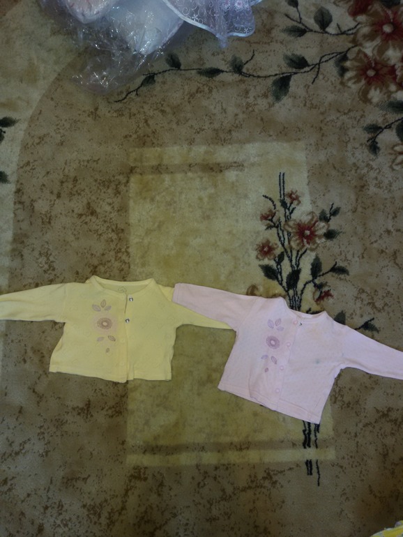 4. Две кофточки : розовая и желтая. На розовой небольшое пятно от зеленки, при стирке исчезнет. Желтая за 100, розовая за 50