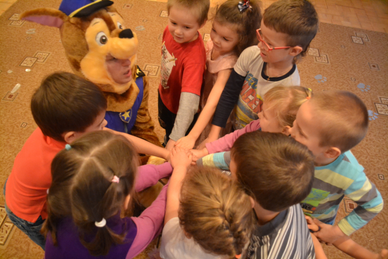 Программа по мотивам мультсериала "Щенячий патруль" главные герои Гонщик (Чейз) и Скай.