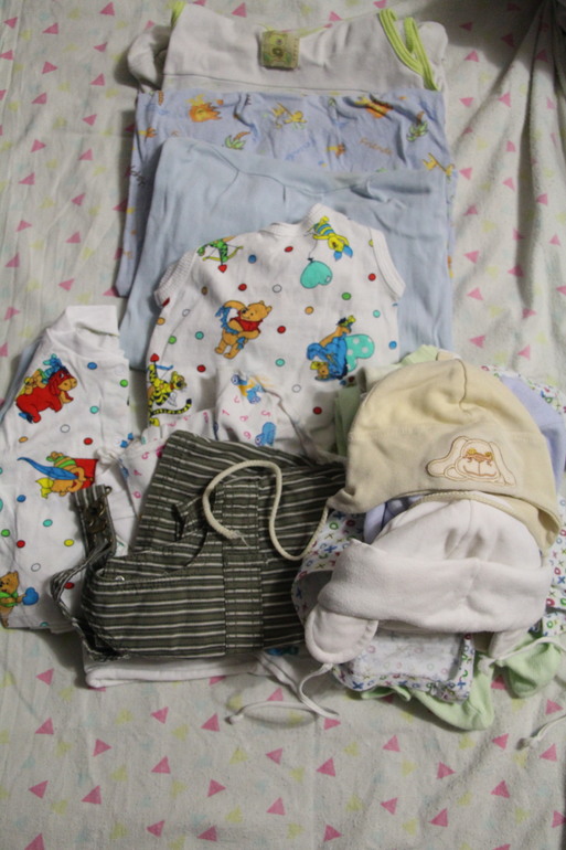 6. Вещи: шапки, ползунки, слипы, кофточки и все такое , состояние разное.(несколько вещей с пятнами от яблока, остальные хорошие.