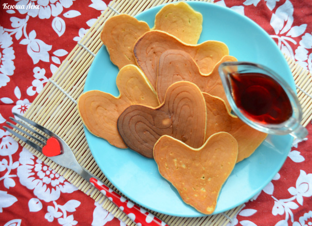 Сегодня, у нас репетиция "романтичного завтрака" ко Дню Святого Валентина, и мы с сыном готовили 2 варианта блинов по одному рецепту. На самом деле, можно воспользоваться любым подходящим рецептом тонких блинчиков, на процесс рисования тестом, это не влияет, главное, чтобы оно было жидкое.
