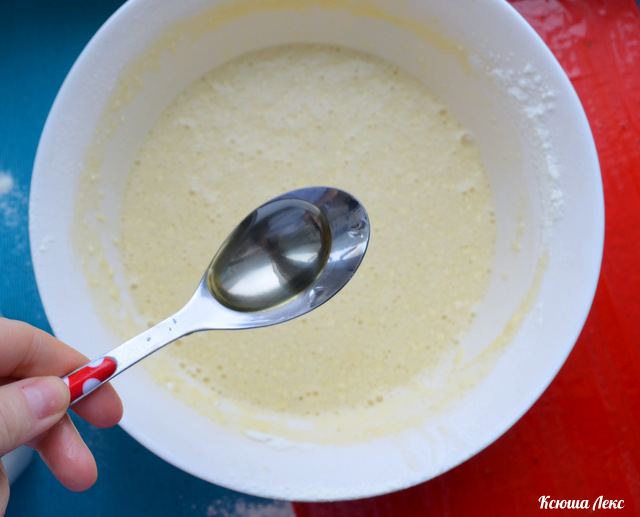 № 6. Чтобы тесто не прилипало, добавляем 1 столовую ложку растительного масла.