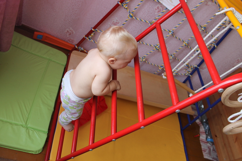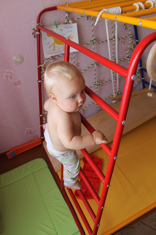 молодец! У меня Ясёнка тоже до года начала свой альпинистский путь)) да меня и саму в год и месяц мама сняла с приставной лестницы, когда я уже под коньком крыши была. Мне иногда кажется, что это нам легко упасть откуда-нибудь, а них присоски на руках)))