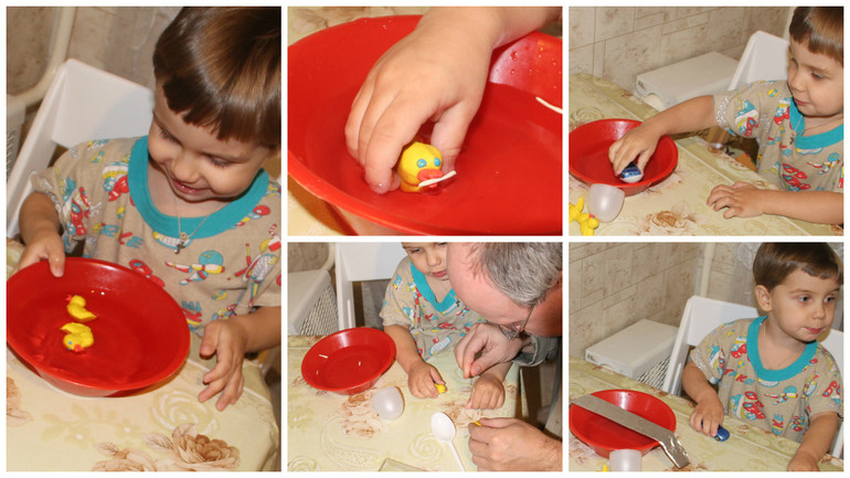 А это наши более радостные лепилки-развивалки - игры с уточками, сделанными из плавающего пластилина, год выпуска нынешний.