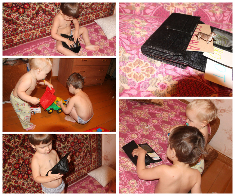 Любит: бабушкину сумку, старый кошелёк, ключи. Вообще, сейчас дома небольшой ремонт-перестановка, так что Митя в своей стихии: хаос, беспорядок, всё отовсюду тащится и перепутывается...