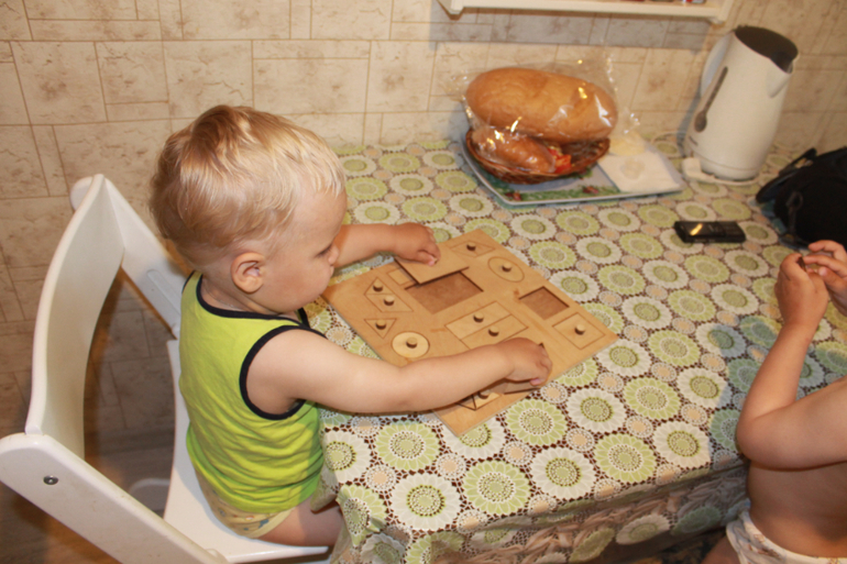Очень нравятся домики с открывающимися дверями и лестницы: строит из лего, играет с бумажными домиками. Вообще двери, окна и лестницы везде в почёте - в машинах, самолётах, каких-то постройках... ну и сам любит в домики играть - залезать под стол или стул, сам себя спрашивать "тя там?" или махать оттуда рукой: "Ие!" (=привет!)