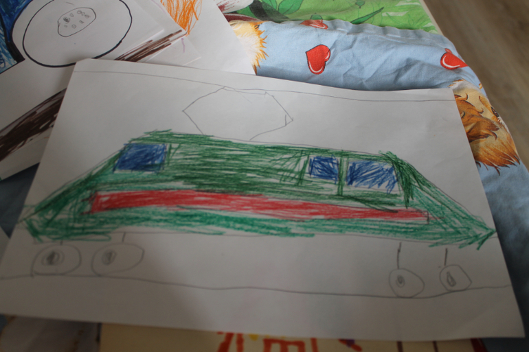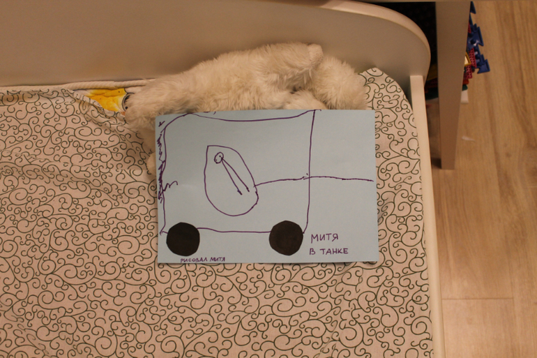 Митя одно время зациклился на танках. Серёжа рисует всё подряд (из транспорта, конечно). Пытаюсь подсказать ему про сюжет и про задний план, но чаще всего очередная машина выходит во весь лист. А если нужно фуру - просит два листа склеить. "Так ведь можно просто поменьше нарисовать, и всё влезет" - "Ну как ты не понимаешь, фура ведь длинная!" После поездки в Санкт-Петербург несколько дней подряд рисовал поезда...