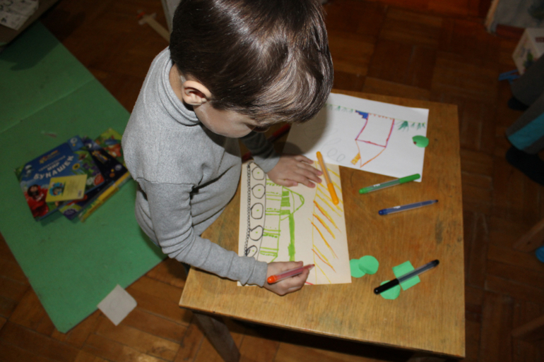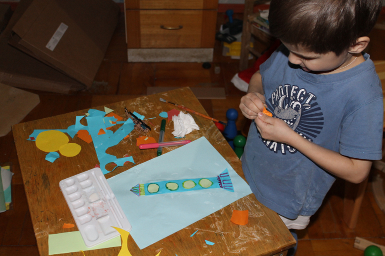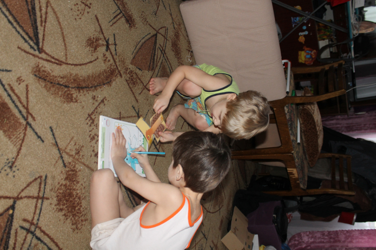 Этим дети всё чаще заняты. Как правило, рисунки или аппликации. 90% - на транспортную тему :-(