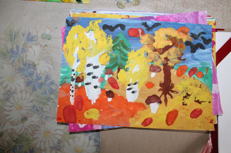 Это на последнем занятии. Внезапно вспомнили, что есть восковые мелки :-)))