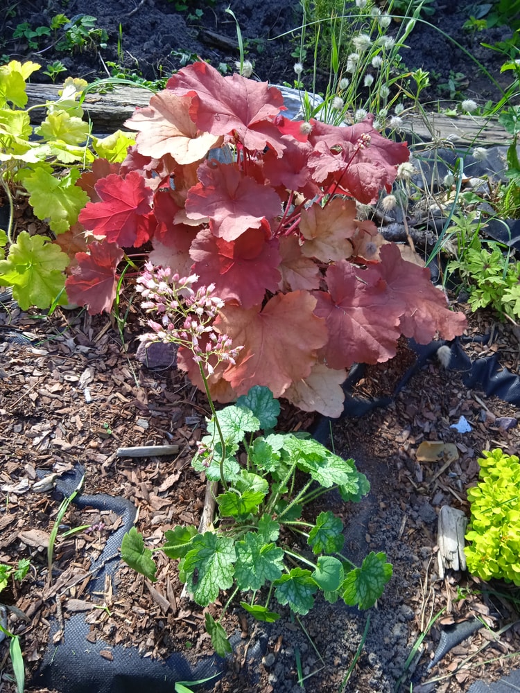 Очень мне нравятся гейхеры (не повезло красавицам с имечком), гейхереллы и тиареллы. Даже специальная грядкоклумба для них у меня выделена.