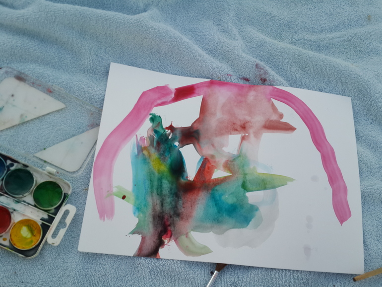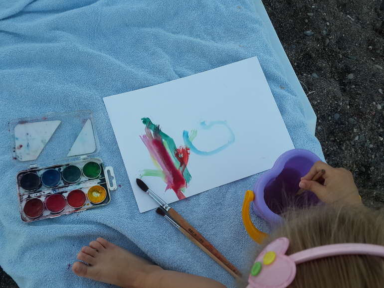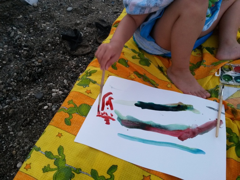 * Несколько листов бумаги, кисти и краски - сидя на шезлонге так приятно творить, вода близко