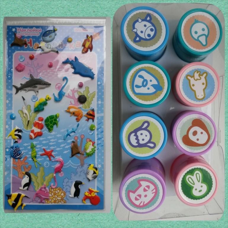 * Штампы - занятная штука, наклейки (чтобы было интереснее клеить, распечатала несколько морских фонов)