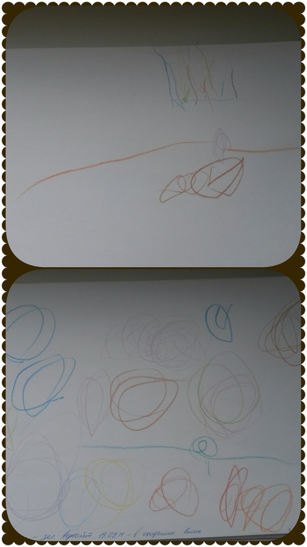 И несколько Вариных рисунков в ожидании вылета (наш рейс туда задержали на 3 часа):