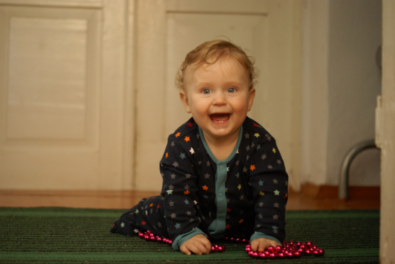Итак, что у нас с начала года. Те же 10 кг веса и 76 роста. Не прибавили в весе, но все равно активны и прекрасны. Ползаем, ходим с опорой и пробуем стоять без нее. Ладушки больше не делаем, два дня достаточно для того, чтоб все поняли, что мы умеем, и отстали с этой идеей. И кажется вот он уже, кризис первого года, мы уже много до чего можем доползти, куда залезть, и чего пожевать. А когда не выходит, бушуем. Сильно.
