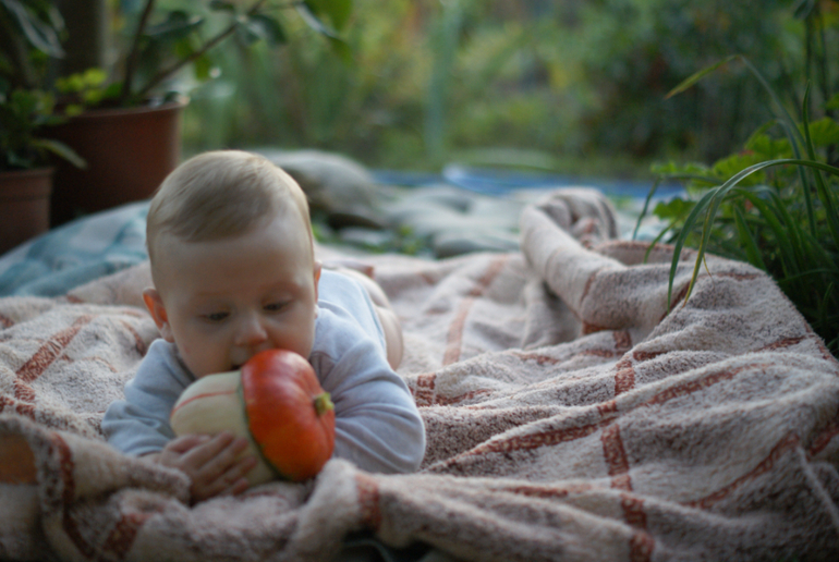 И что у нас еще. Мы вертимся, уже один раз спилотировали с дивана, правда без ушибов и через 20 секунд уже улыбались до смерти испуганным маме с папой. Кусаемся, пока особо нечем кусаться но мы тренируемся. Вовсю пытаемся ползать, но пока не успешно, разглядываем и покусываем пальчики на ножках, даем маме перекусить взамен на мультсеанс Куми-куми. Сделка с совестью, но он обожает этот мультфильм. А еще какое-то время пытались слогами лепетать, получалось уверенное "амамам" и иногда что-то похожее на "мама", сердце замирало))))
