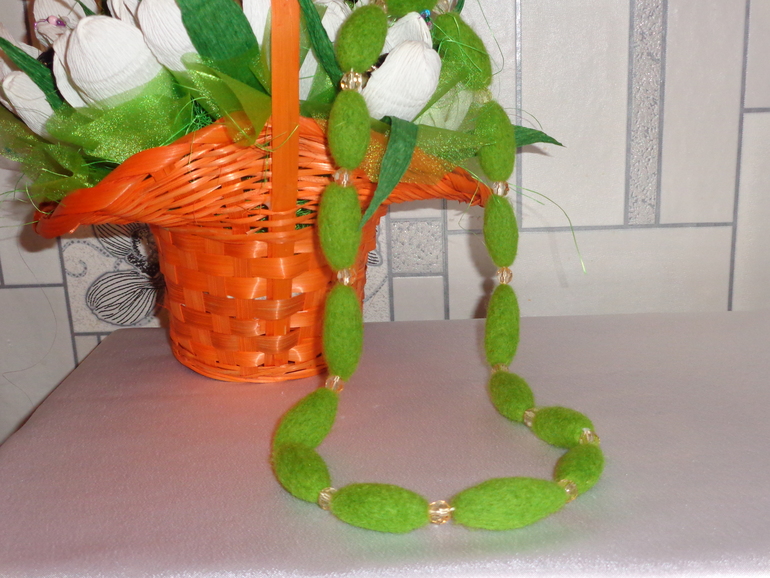 Тёплые ,уютные валяные бусы выполнены в смешанных технике сухого и мокрого валяния.