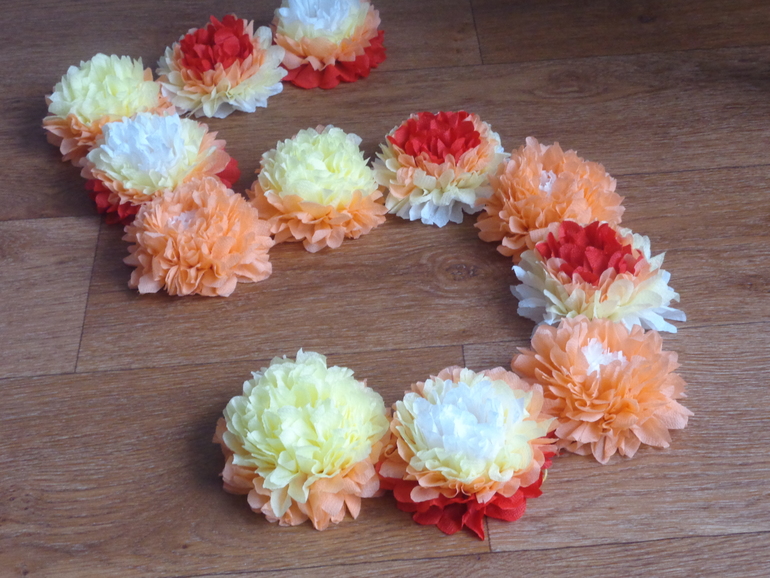 Изготовлены из бумаги тишье.(Скажу честно бумага очень тонкая и хрупкая).Делала несколько дней...результат..