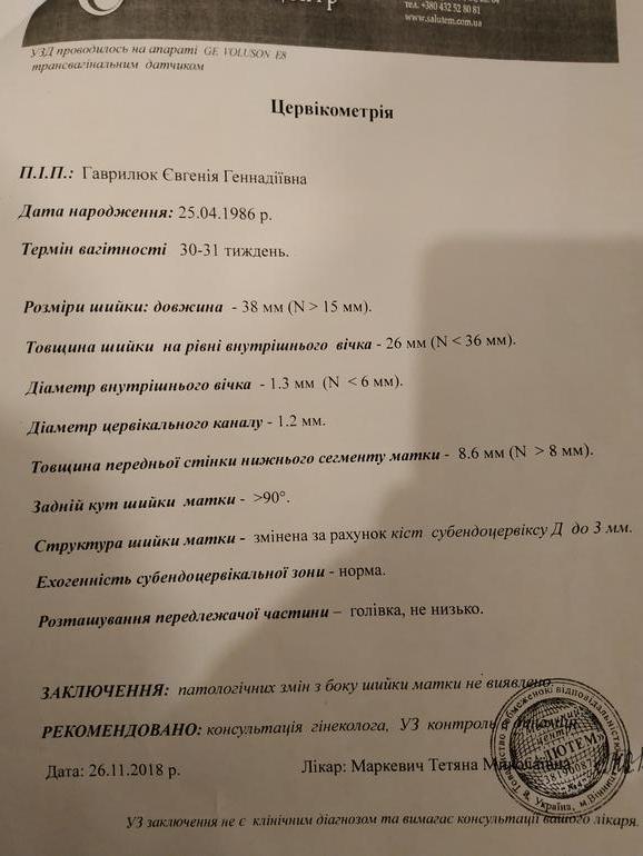 Фото палаты и УЗИ недельной давности шейка укорочена.
