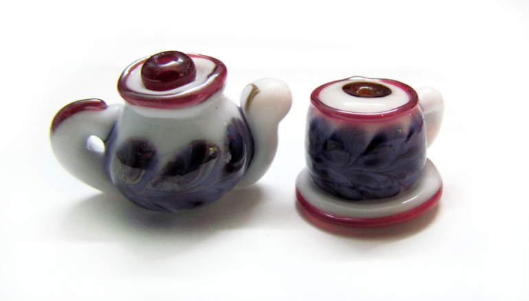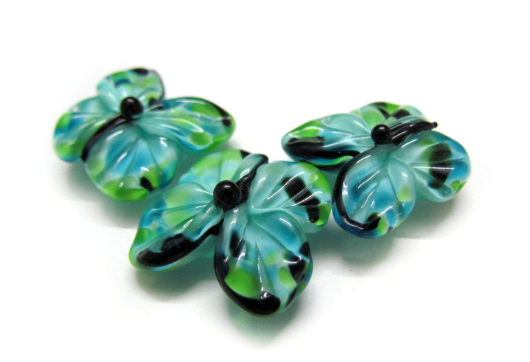 Бусины лэмпворк - синие анютины глазки. Идеально подходят для набора из кулона и сережек.