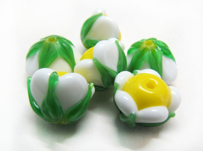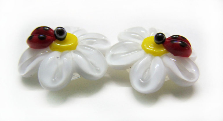 Бусины лэмпворк - цветочные шары с ромашками и божьими коровками. Приблизительный размер - 1.5 см х 2 см