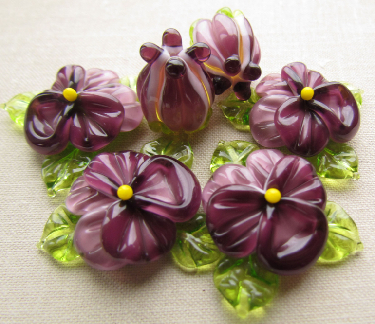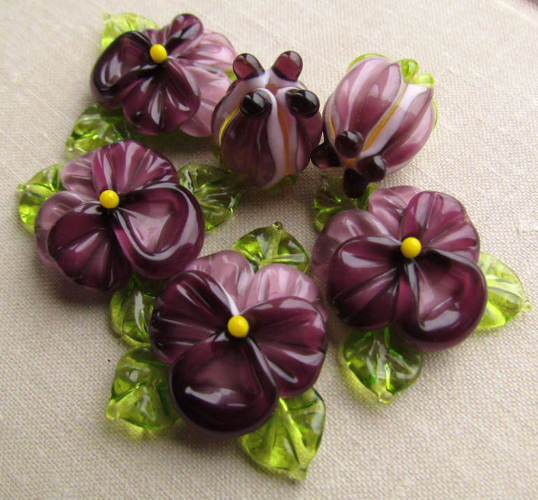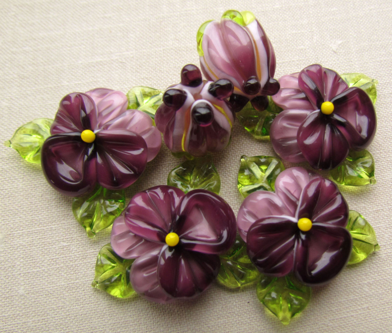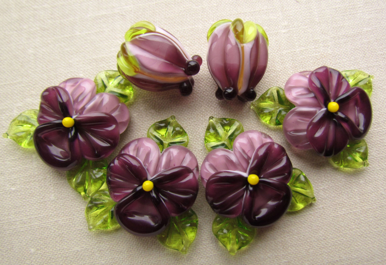 авторский лэмпворк, цветы, анютины глазки, лэмпворк, Авторские бусины лэмпворк, бусина лэмпворк, бусина цветок, анютки, фиалки, бусины анютины глазки, бусина фиалка, цветы lampwork, lampwork, стеклянные бусины, стеклянные цветы, инна киркевич, бутоны
