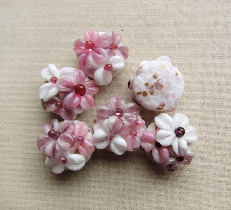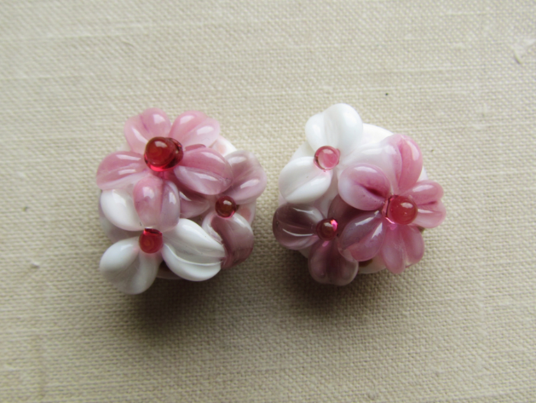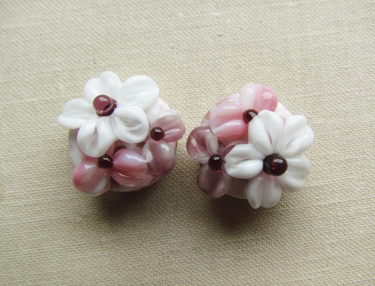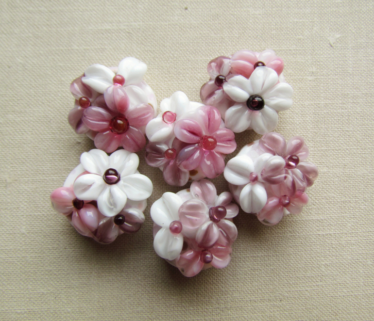 Круглые цветочные бусины лэмпворк