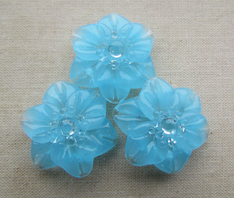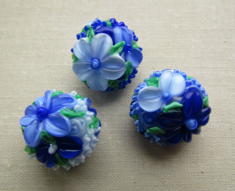 Бусины лэмпворк для создания украшения - голубые цветы