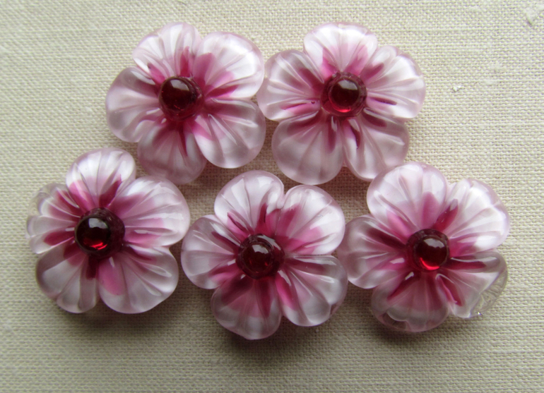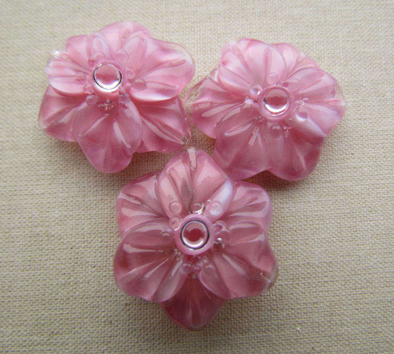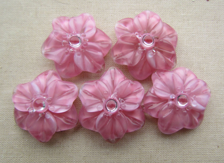 Бусины лэмпворк для создания украшений - розовые цветы.