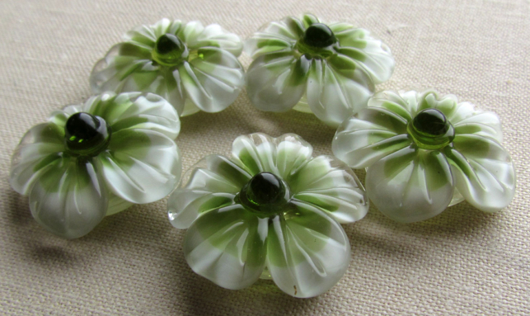 Бусины лэмпворк - цветы из стекла мятного цвета
