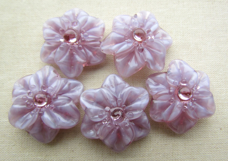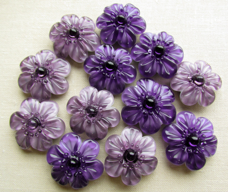 Бусины лэмпворк - аметистовые и фиолетовые цветы