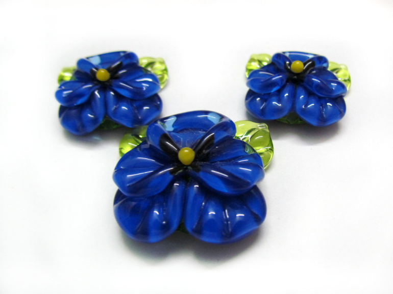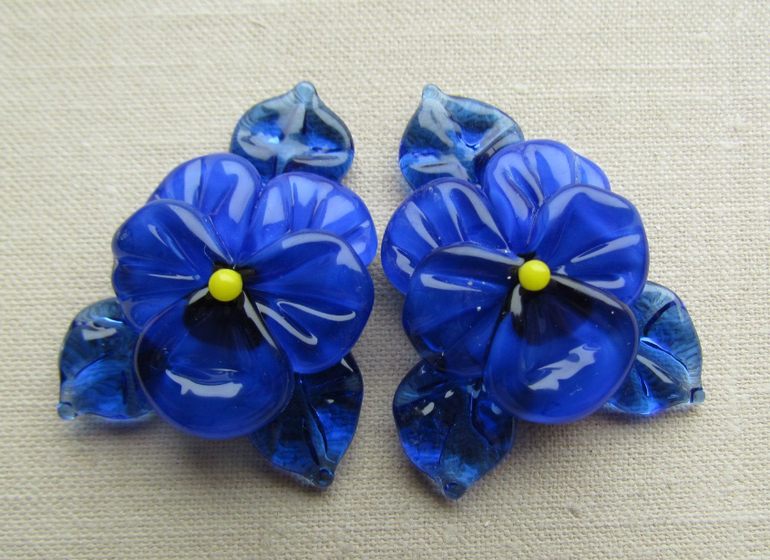 Бусины лэмпворк - синие анютины глазки. Идеально подходят для набора из кулона и сережек.