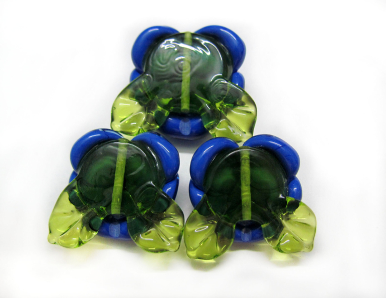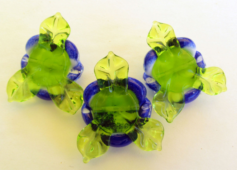 Бусины лэмпворк анютины глазки, сделанные из белого, синего и светло-зеленого стекла
