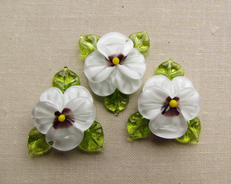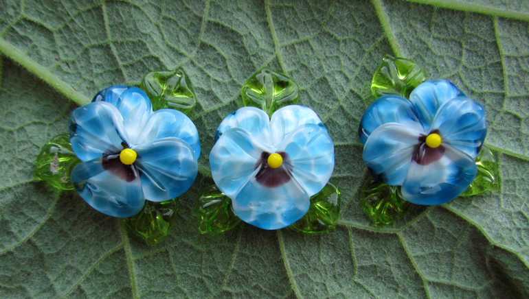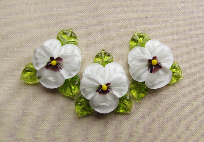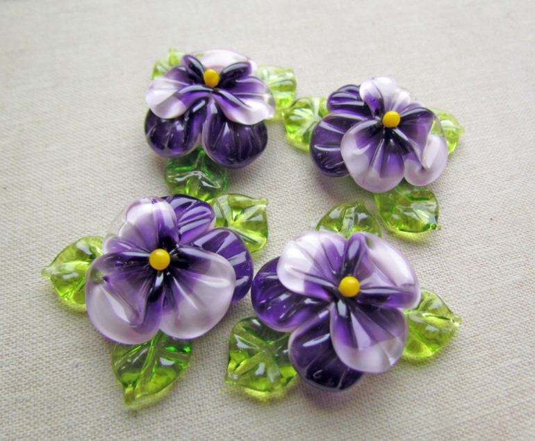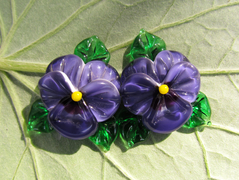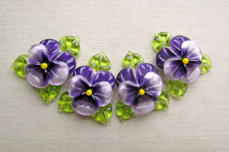 Стеклянные анютины глазки - авторские бусины лэмпворк для создания украшений