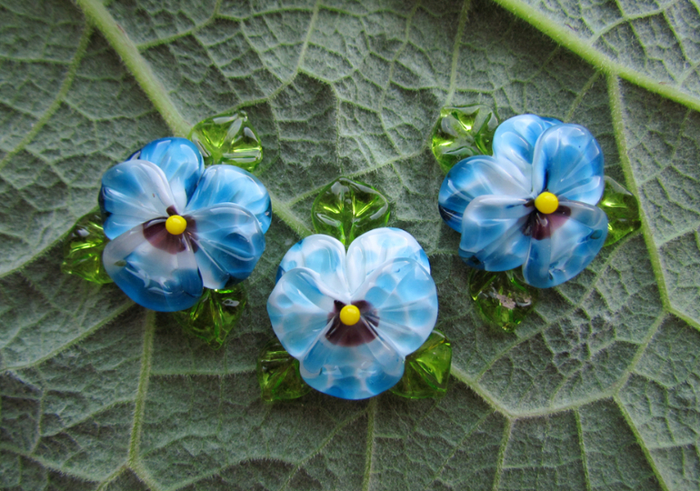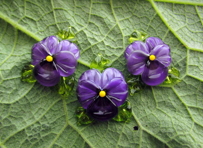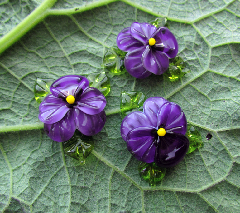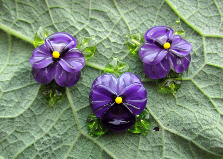 авторский лэмпворк, lampwork (лэмпворк), цветы, анютины глазки, лэмпворк, Авторские бусины лэмпворк бусины лэмпворк, бусина цветок, анютки, фиалки, бусины анютины глазки, бусина фиалка, цветы lampwork, lampwork, стеклянные цветы, инна киркевич