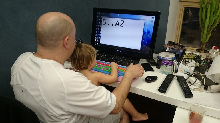 Но папа сказал, что дочечку путают русско-английские буквы на взрослой клавиатуре и купил ей детскую! Девчёнки - это ВЕЩЬ!!! Стоит 1000руб., безпроводная, гласные-согласные разным цветом, клавиши крупные, цветная!! Лиса оооочень довольна!! Это же ЕЁ, КАК У ПАПЫ!)))
