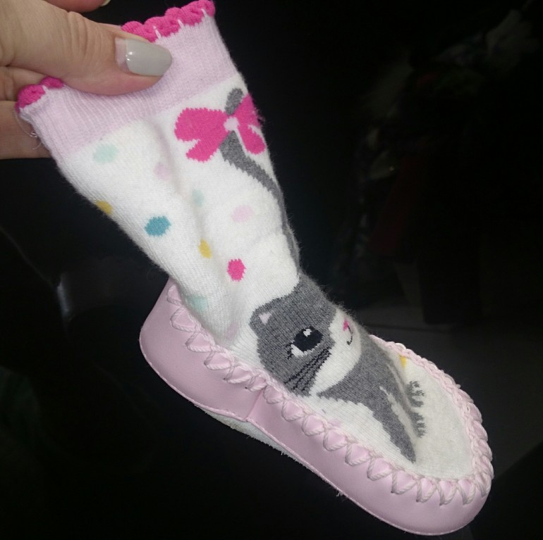 N2 Махровый носок (махрой внутрь) с нашитой на следок кожей. Вещь! Первый раз увидела их в H&M в Испании. Купила, т.к. в доме, на полу была плитка холодная, а любую обувь Лиса с себя сдирала. Эти носила и носит с удовольствием! Промокают. Не скользят. Носим дома или берем с собой на развивашки (на гимнастику). На днях купила такие в H&M на Войковской (399р.), потом зашли в детскую Шоколадницу, а там надо снимать обувь, когда в детский игровой городок заходишь. Носки скользят, когда лазает. Надела эти - отлично! Теперь всегда их буду в такие места брать))