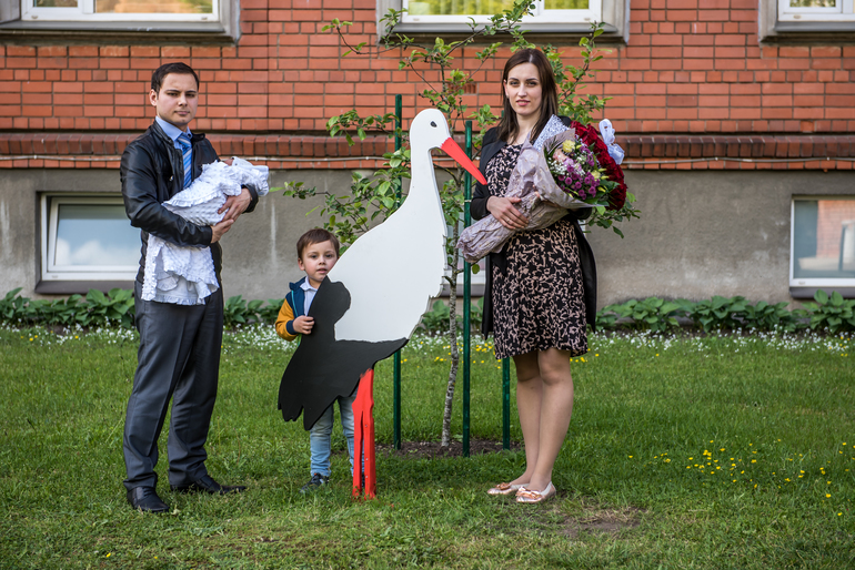 Наш второй сынок родился 2 июня 2015 года в 5 утра в г. Рига. Выписывались на третий день 4 июня, день был прохладный, как впрочем и весь июнь в этом году в Латвии, поэтому одним пледом не обошлись, одевала в плюшевый комбез. Старший соскучился сильно, встречал нас волнительно и даже со слезами...Фото с выписки ниже...