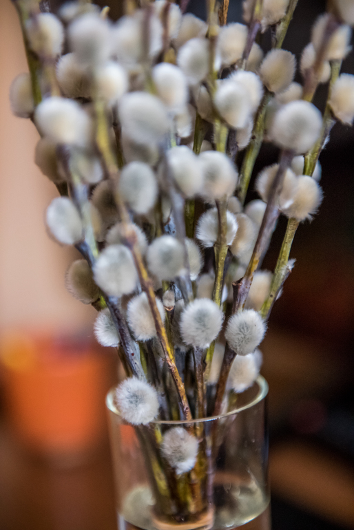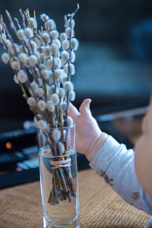 Погодка в воскресение меня немного подвела... сначала лил ливень несколько часов, затем шел снег огромными хлопьями! Дети кашляют, так и не дошла я до церкви. Сидели дома. Спасибо крёстной Павла, порадовала нас освященными вербочками...