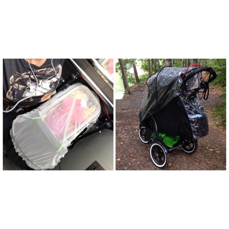 Дождевик и москитная сетка ну очень удобно одеваются и сумочки для их ношения прекрасно крепятся к коляске.