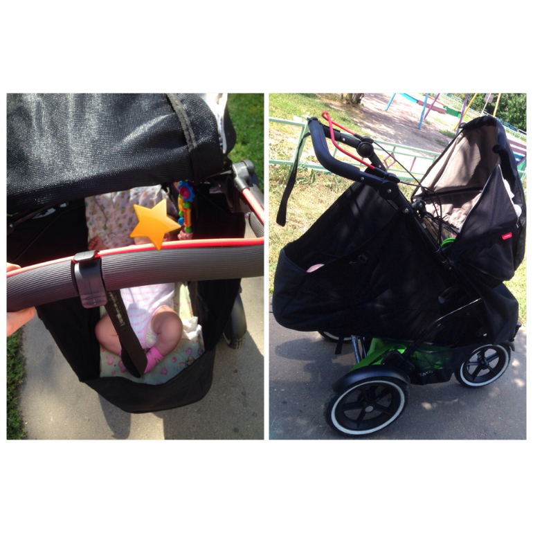 Малышка у нас родилась 3800 и довольно активно добралась до 7 кг. Поэтому люлькой мы попользовались всего 2 месяца и перелегли в прогулочный блок. Что удивило и порадовало : длина спинки прогул очного блока позволяет положить малыша в полный рост лицом к себе (я положила твердый матрасик для удобства доченьки). Лето в Москве выдалось довольно жаркое и потому малышке в прогулке было даже намного лучше ездить, ведь она хорошо проветривается.